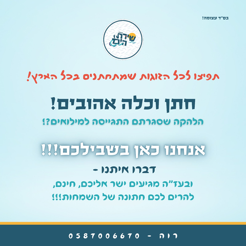 השאירי פרטייך במקומות הרלוונטים ואנו נחבר אליך בחורה מתאימה!