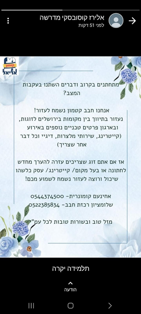 ☺️מצפה אילן: תמר- 0555691712. אילה- 0584522309.