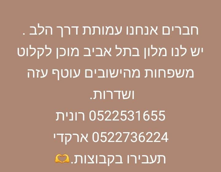 ☺️מקום לינה בסמוך לשיבא למשפחות פצועים/ משפחות מהדרום. 0507119798 - רותם.